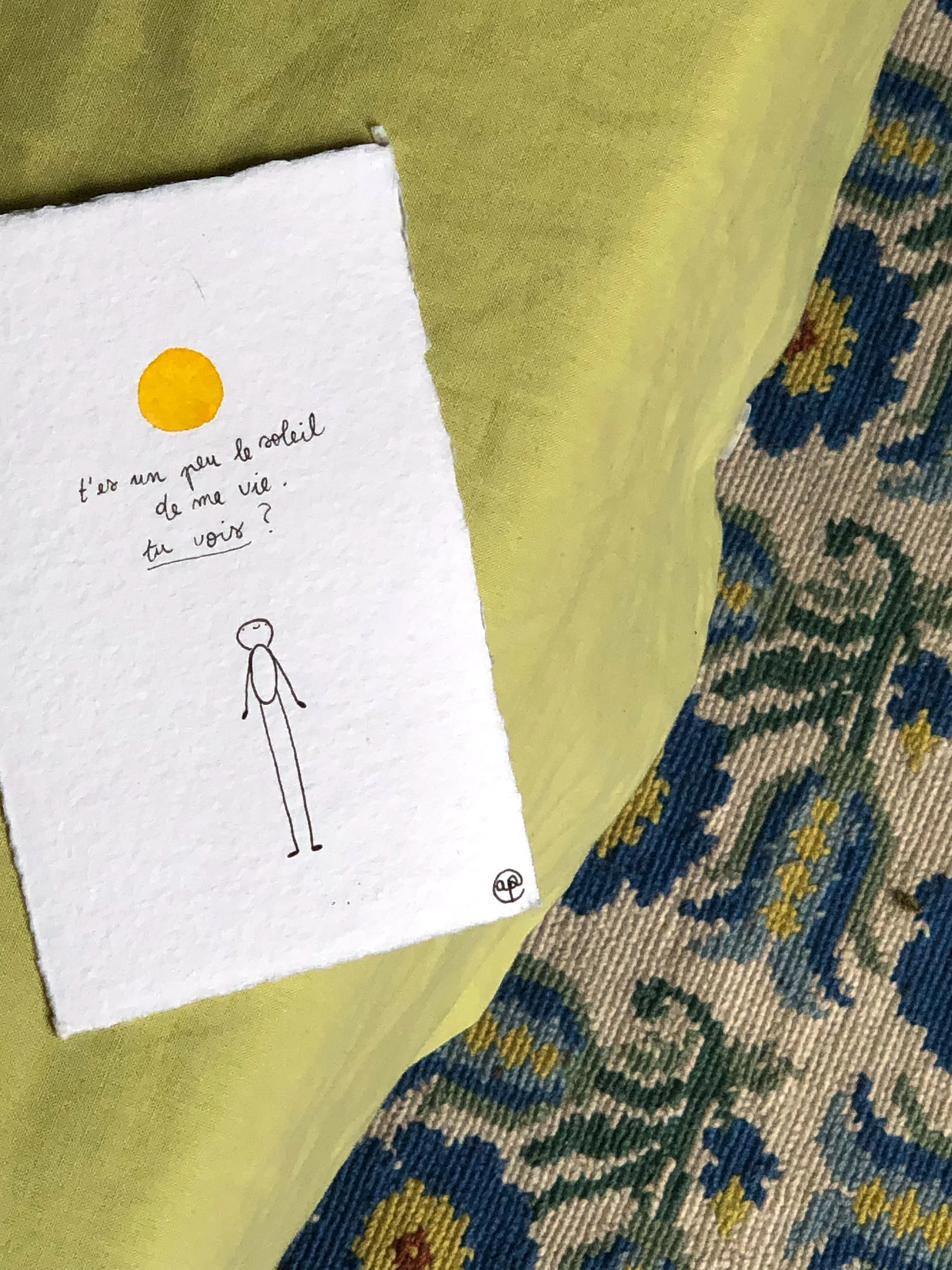 Catégories : Sélectionnez une catégorie Oeuvres Uniques Surprises Cartes Marques Pages Prints Shop Oeuvres Uniques | Prints | Doux Hasard 18,00 € Little Sunshine 18,00 € Étreinte 18,00 € Precious 12,00 € Maintenant 12,00 € Renaissance 12,00 € Vivre Fort 12,00 € Luminescence 12,00 € Mi vida 12,00 € Paysage "Délicatesse" 20,00 € Paysage "Eveil" 20,00 € Paysage "Audace" 20,00 € Paysage "Protection" 20,00 € Paysage "Joie" 20,00 € Paysage "Intuition" 20,00 € Paysage "Nuance" 20,00 € Kodoku 18,00 € Lucky Cookie 18,00 € Pioche Miracle 10,00 € Gratitude 5,00 € Overthinking 18,00 € Merci la vie 5,00 € Petite fleur 5,00 € Essentiel 12,00 € South 12,00 € Amour Toujours 12,00 € Everything is ok 12,00 € Brouillon 18,00 € Enough 18,00 € Papillons 18,00 € Merci Maman 18,00 € La vie est belle 18,00 € Épuisé Amour 18,00 € Aura confiance 18,00 € c'est ok 18,00 € +1 18,00 € Dimanche 18,00 € amour d'été 18,00 € Set de 9 prints 35,00 € Bouh 5,00 € Mon amour 18,00 € Les petites choses 15,00 € chemin merveilleux 18,00 € Fleur Du Soleil 5,00 € Peace 5,00 € Merci 18,00 € Chouchou 5,00 € Instant T 18,00 € Mot d'amour 5,00 €